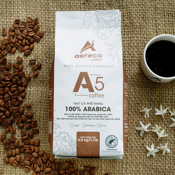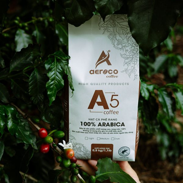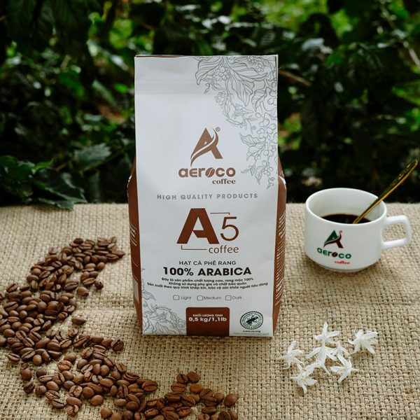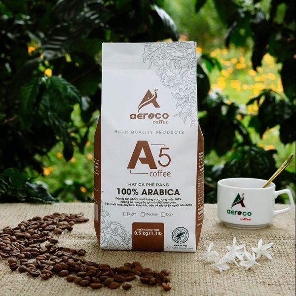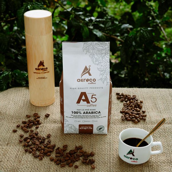 Cà phê AEROCO hạt rang A5 nguyên chất 100% rang mộc hậu vị ngọt thơm quyến rũ, hộp 500gr phù hợp pha máy và pha phin