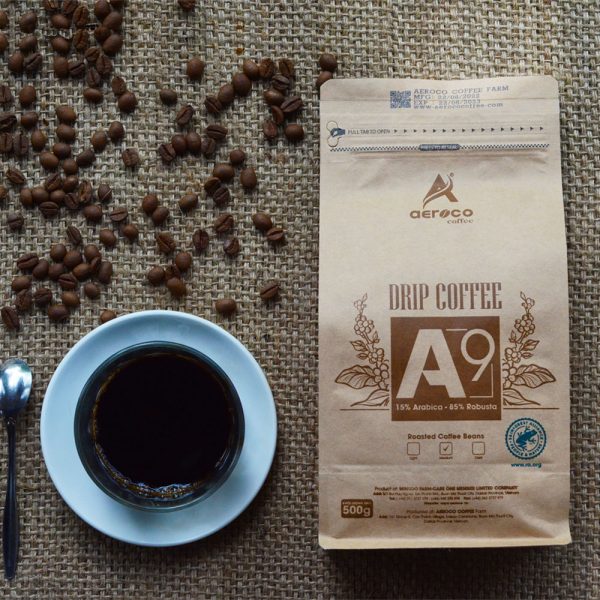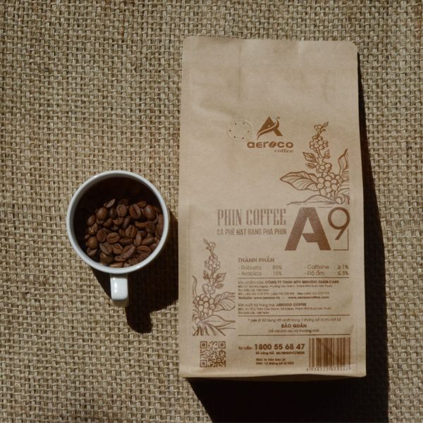 Cà phê hạt rang A9 AEROCO COFFEE, nguyên chất 100% rang mộc hậu vị ngọt thơm quyến rũ, gói 500gr pha phin